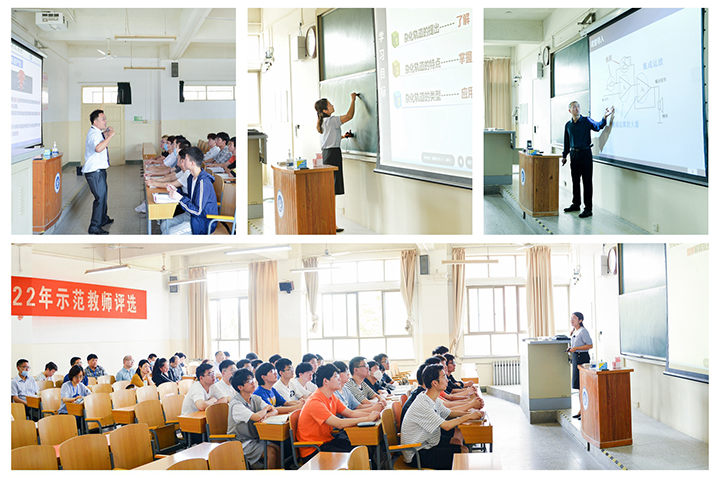 5月21日,我校2022年示范教师评选活动集中讲课竞赛在南校区一号教学楼举行。各学院组织中青年教师到场观摩学习。