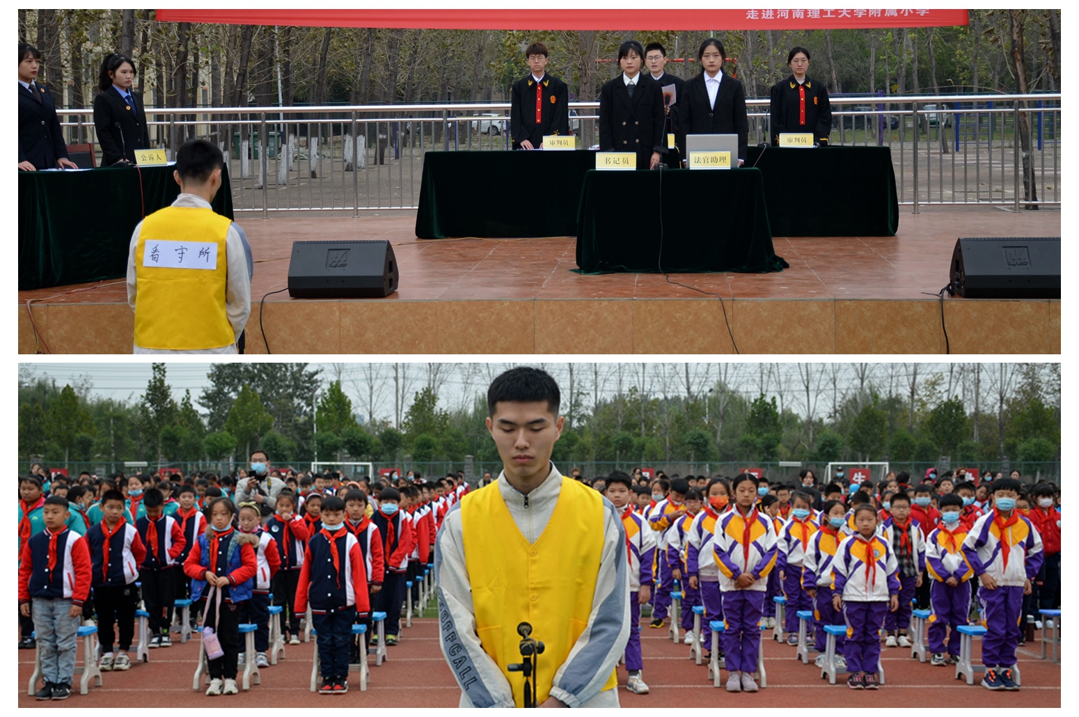 为秉承“学党史、办实事”的宗旨,把主题教育同专业优势紧密结合,服务地方社会,助推法治教育治理体系和治理能力现代化建设,10月19日下午,文法学院法学系教工党支部举办了第二场“模拟法庭”进校园志愿服务活动——走进河南理工大学附属小学,法学系教工党员、该院团委负责人及理工大附小的全体师生到场参加。