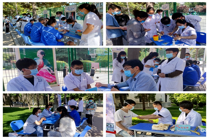 五月是鲜花盛开的季节,也是医务工作者忙碌的季节。在经历了将近三年的疫情防控生活之后,人们更加认识到了健康的重要性,作为医护人员,做好健康宣教、守护人民健康是义不容辞的职责。为迎接五月份的国际护士节、国际红十字日、国际助产士日,在“能力作风建设年”专项活动纵深推进之际,我们用实际行动践行职责,贯彻志愿服务精神,进一步丰富疫情下的校园生活,医学院护理系联合第一教工党支部于近日在北校区东西走向的焦工路上开展“疫”往无前 “护”你健康志愿者活动,为校园内的师生进行健康维护。此次活动分别设置测量血压、监测血糖、血型鉴定、疾病咨询、外伤处理五个活动项目。