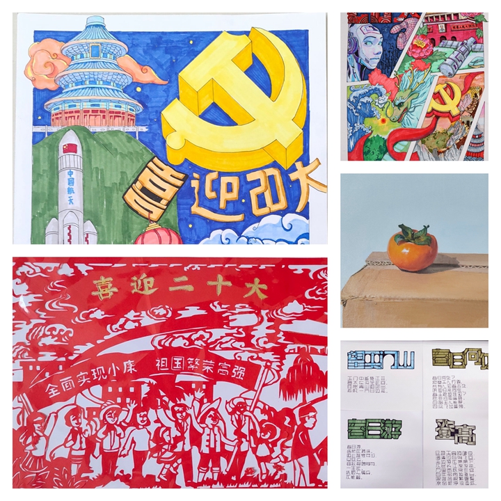 本次比赛由学生工作部(处)主办,建艺学院承办并在晓书楼进行。自活动印发通知征集作品以来,共收到来自全校不同学院的130余幅作品参赛。参赛作品创意新颖、特色鲜明,一字一画,一笔一墨之间,均展现出我校青年学生良好的艺术素养,表达了学生们对党的深切热爱和对祖国的美好祝愿。比赛邀请建艺学院、学生工作部(处)、校公共艺术教育中心公共美术教育教研室等单位负责人担任评委,经评委组评审,最终评选出书法组作品一等奖5幅、二等奖8幅、三等奖12幅,绘画组作品一等奖3幅、二等奖5幅、三等奖9幅,以及书画作品优秀奖若干。下一步将挑选优秀作品在全校范围内进行展览。