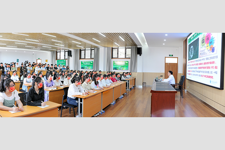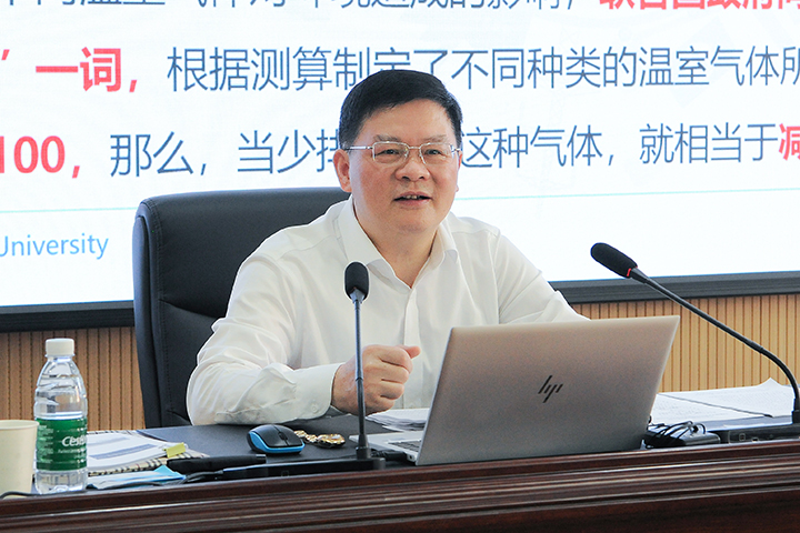 邹友峰聚焦中央关于立足新发展阶段、贯彻新发展理念、构建新发展格局重大战略部署,深入分析中国“双碳”目标的时代背景和重大意义,着重介绍实现“双碳”目标的中国实践,总结展望助力“双碳”目标实现的理工担当。他指出,实现碳达峰、碳中和目标,是以习近平同志为核心的党中央统筹国内国际两个大局作出的重大战略决策,是着力解决资源环境约束突出问题、实现中华民族永续发展的必然选择,是构建人类命运共同体的庄严承诺。他强调,党的十八大以来,在习近平生态文明思想指引下,中国积极贯彻新发展理念,围绕推动科技创新和政策创新,开展一系列根本性、开创性、长远性工作,坚定不移走绿色、低碳、可持续发展道路,努力建设人与自然和谐共生的现代化,推动生态环境保护发生历史性、转折性、全局性变化。