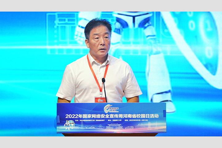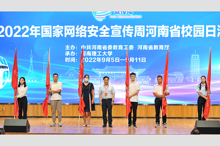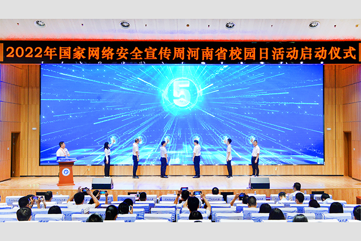 本网讯 (记者 苏丽敏 通讯员 余彬彬/文 李为群/图)为深入学习宣传贯彻习近平总书记关于网络强国的重要思想,宣传贯彻习近平总书记对网络安全工作“四个坚持”的重要指示,按照教育部要求和省委网信办工作安排,省委教育工委、省教育厅于9月5日至11日在全省高校开展“网络安全为人民,网络安全靠人民”为主题的国家网络安全宣传周河南省校园日活动,活动由河南理工大学承办。9月6日上午10点,“2022年国家网络安全宣传周河南省校园日活动”启动仪式在学校南校区第二图书馆学术报告厅举行。