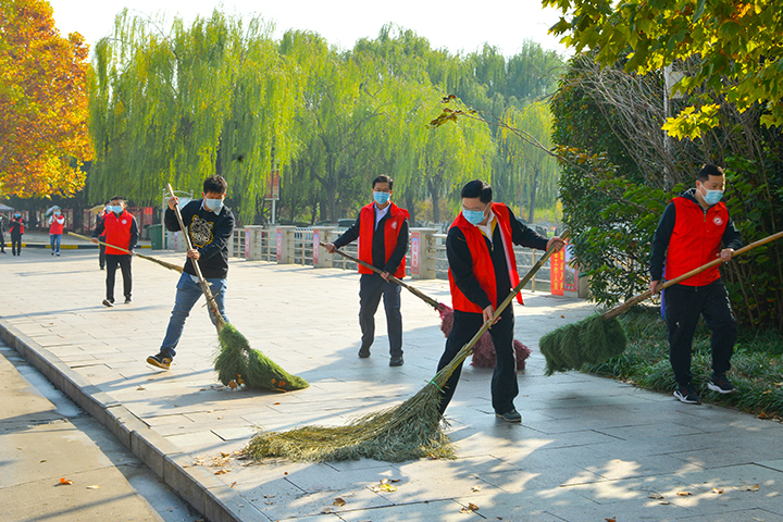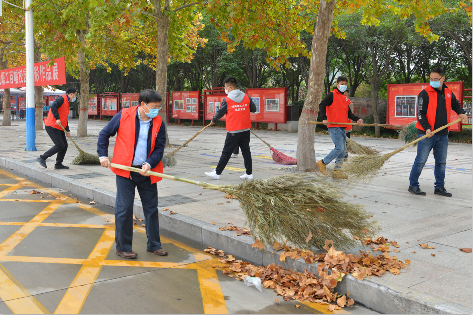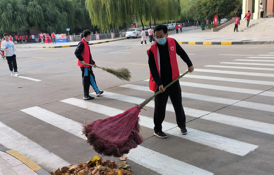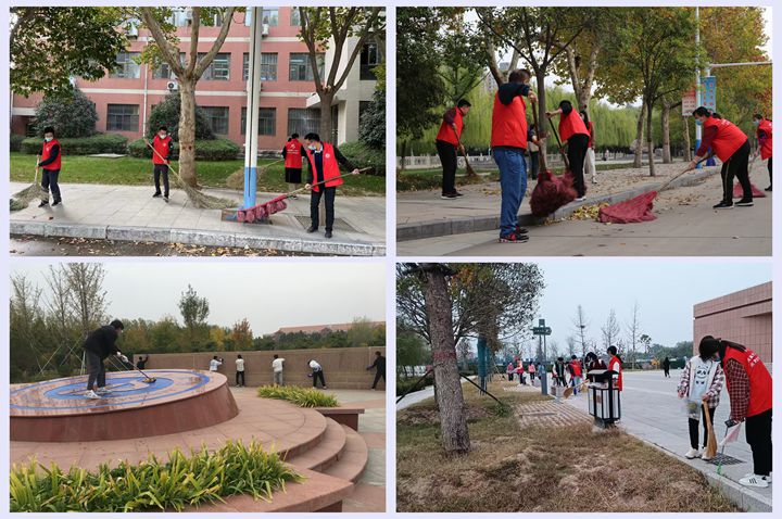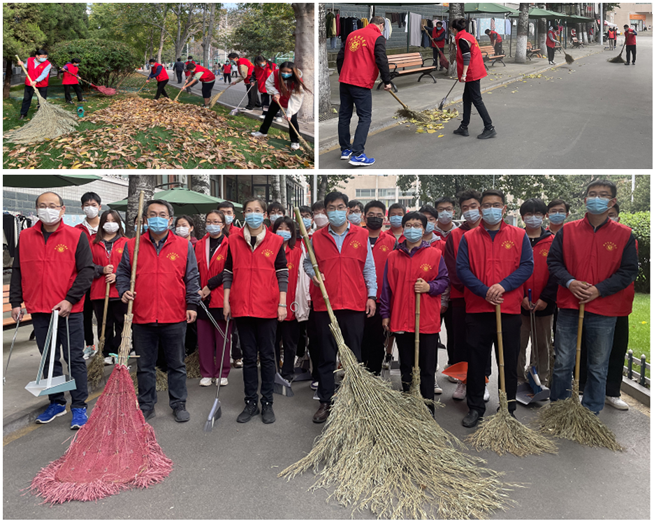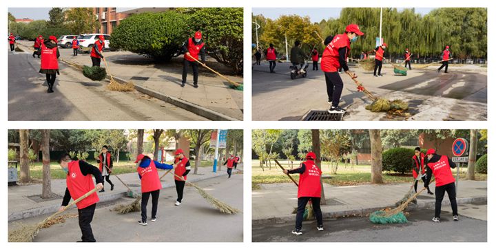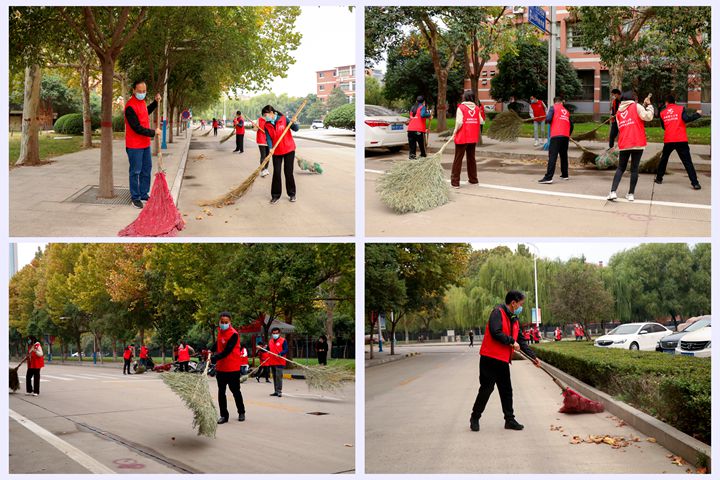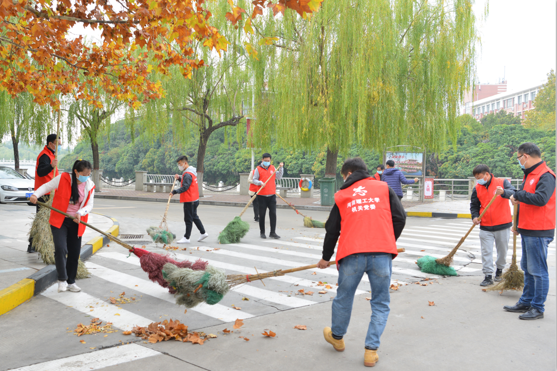 维护校园环境,助力疫情防控。10月25日上午,校长杨小林带领校办党支部党员志愿者们,在南校区春秋大道、明德广场清扫落叶、打扫卫生,共创美好环境、共建美丽校园!