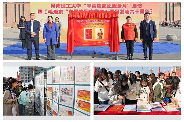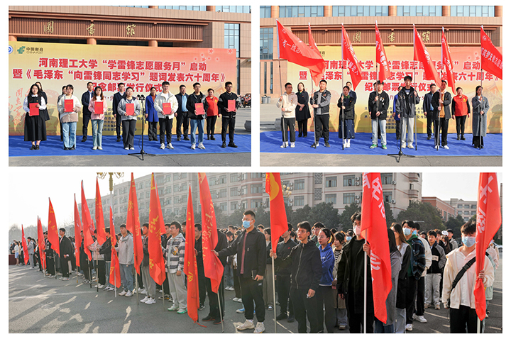 仪式上,焦作市学雷锋志愿者协会会长许琳娟、焦作市邮政分公司副总经理吉战宜致辞,校团委副书记王明娅宣读2022年河南理工大学优秀志愿者表彰名单,到场的领导嘉宾共同为《毛泽东“向雷锋通知学习”题词发表六十周年》纪念邮票揭幕、为优秀志愿者代表颁发证书、为青年志愿者服务队代表授旗,优秀志愿者学生代表发言。校团委书记支光辉在启动仪式上向全体团干部、团员青年、青年志愿者提出三点希望,一是深入学习贯彻习近平总书记关于学雷锋志愿服务的重要论述,树立崇高理想追求,践行社会主义核心价值观,激发爱党爱国爱社会主义巨大热情,更加坚定拥护“两个确立”、坚决做到“两个维护”;二是增强做好学雷锋志愿服务工作的紧迫感和责任感,不断深化学雷锋活动的时代内涵,更好的传承雷锋精神;三是重在平时、立足本职,联系实际、讲求实效,自觉把个人追求融入为党和人民事业奋斗中,为中国式现代化建设添砖加瓦,用实际行动让雷锋精神在新时代绽放更加璀璨的光芒。