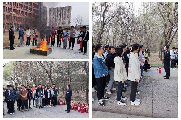 在安全教育理论课后,保卫处消防工作人员在三号教学楼东南侧场地为新生进行了如何正确使用灭火器的实践教学。首先介绍了如何使用手提式干粉灭火器灭火,然后由新生分组进行实战演练,让新生真切感受到在面对火情时应如何快速对其进行扑灭。此次实践课程也是十分有意义的,让新生在面对真实火情时能够临危不乱,从而提高消防安全意识。