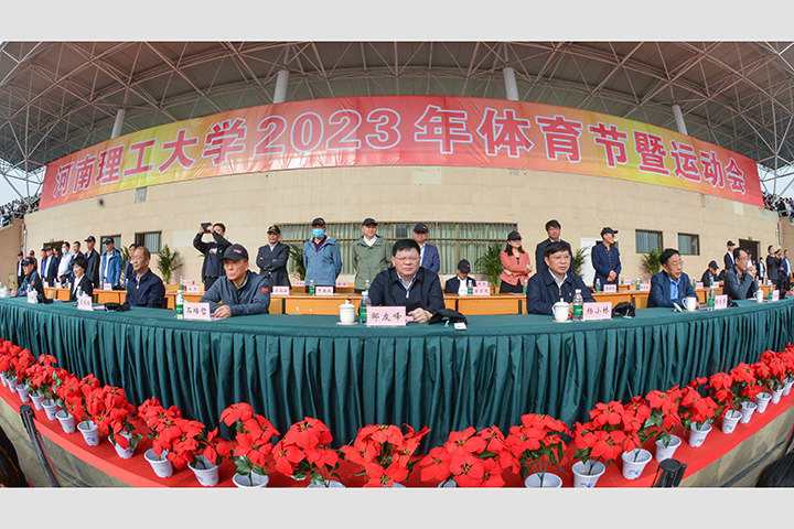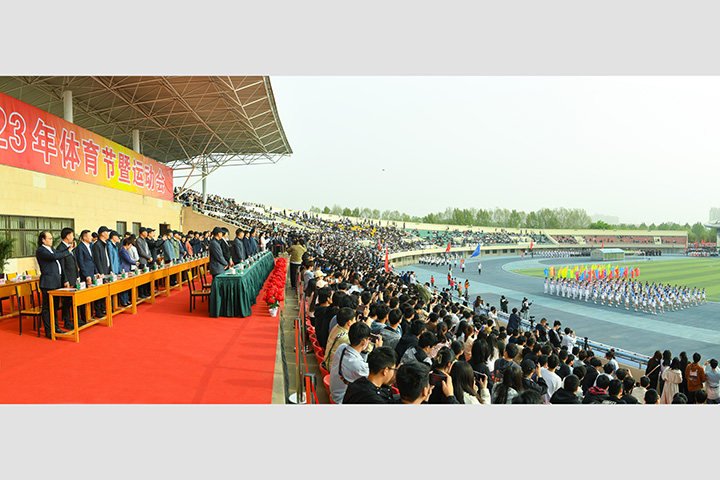 在全体裁判员、运动员和现场观众热切期盼的瞩目下,校党委书记邹友峰宣布:“河南理工大学2023年体育节暨运动会开幕!”