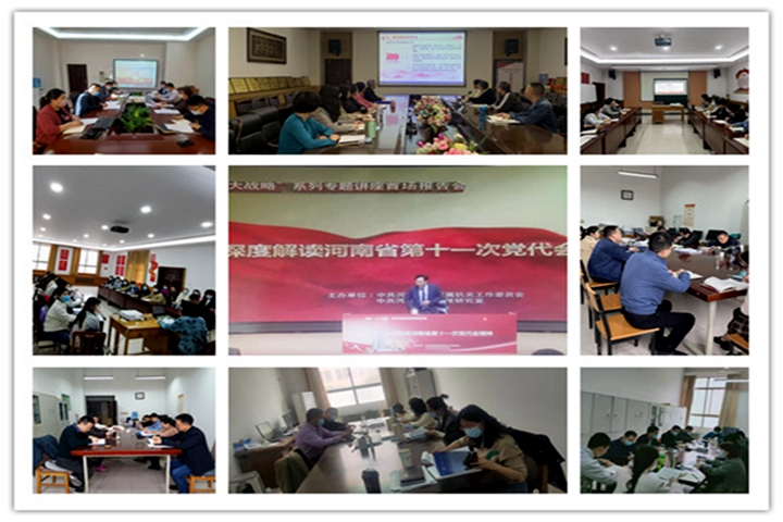 4月11日上午,该院党委中心组成员在文科综合楼223会议室开展专题学习会,就河南省委工作会议中提出的河南省“十大战略”内容开展学习。首先,该院党委书记侯菊英领学了“十大战略”的主要内容,并结合创新驱动、科教兴省、人才强省战略等与学院发展紧密相关的战略进行深入讲解和分析,使老师们进一步明确了我省重大发展战略的总布局和今后工作的改进方向。随后,又观看了“十大战略”主题系列专题讲座——“加快实施数字化转型战略 全方位打造数字强省”。4月12日下午,该院各党支部分别利用“三会一课”学习时间开展形式多样的“十大战略”内容学习会。各党支部结合工作实际,开展了党支部书记上党课、专题学习研讨会、集体备课和观看视频讲座等活动,深入学习了“十大战略”的内容。