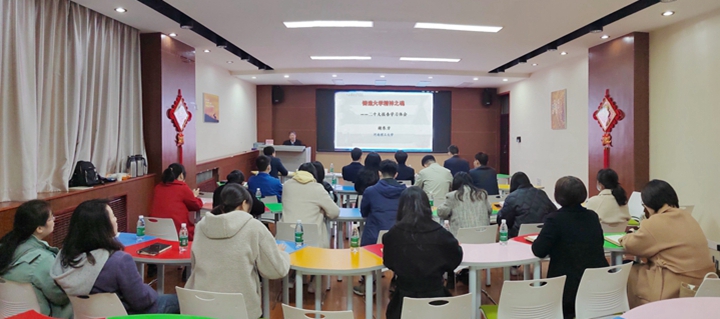 谢东方以《铸造大学精神之魂》为题,从掌握党的二十大报告的精髓灵魂着手,重点围绕文化的意识形态价值、文化的核心价值、文化的道德价值、文化的产业价值、文化的话语价值等方面,深入阐述了对“什么是文化”的理解。他指出,坚持和发展马克思主义,必须同中华优秀传统文化相结合,我们要坚定历史自信、文化自信,高度重视和加强文化建设,做好新时代意识形态工作,践行社会主义核心价值观,为国家立心、为民族立魂。他强调,培养担当民族复兴大任的时代新人,关键在于铸造大学精神之魂,培养学生懂大道、知感恩、行大义、有情怀,我们的大学就有了精气神,就有了魂。