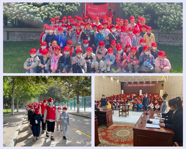 当天上午,在志愿者的陪同下,小记者们排好队形,带着好奇与兴奋游览校园,参观校史馆,旁听模拟法庭审判,学习法律知识,体验大学生活。在校史馆,讲解员将学校发展史与党的奋斗史紧密结合进行生动讲解,激励大家为国家富强和民族复兴勇往直前,努力奋斗。小记者们从学校的百年校史中感受到学校浓厚的历史底蕴和人文气息。随后,他们走进模拟法庭,旁听一场对未成年人刑事案件的模拟审判。志愿者用通俗易懂的语言和具体真实的案例向他们普及未成年人保护和预防犯罪的法律知识。在模拟过程中,小记者们仔细思考,积极互动,纷纷表示要讲究文明礼仪,反对校园欺凌,争做遵纪守法的好少年。最后,活动圆满结束,小记者们井然有序的排好队走出校园,迫不及待地与家长分享他们这次的校园之旅。