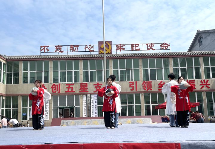 本网讯 (通讯员 孟天屹)为深入学习贯彻习近平新时代中国特色社会主义思想,繁荣乡村文化生活,营造文化赋能乡村振兴的浓厚氛围,5月11日上午,河南理工大学音乐学院、体育学院的师生们来到沁阳市新店村,为当地群众送上了一场精彩纷呈的文艺演出。 演出伴着热烈欢腾的舞蹈《美丽中国》正式拉开序幕。音乐学院、体育学院的师生们各展才艺,为观众带来了一场酣畅淋漓的音乐盛宴,歌曲《美丽的心情》,小提琴独奏《花儿为什么这样红》,舞蹈《送我一朵玫瑰花》,古筝重奏《蝴蝶泉边》,歌舞《春风十万里》和形式多样的太极拳、太极球、太极扇等节目暖人心接地气,紧扣时代主题催人奋进。省文联副主席、省音协副主席、我校音乐学院院长李新现教授一曲《父亲》,更是把演出推向高潮。 现场掌声欢笑声不断,群众近距离享受了一场接地气、入人心的文化大餐,体验到了歌舞表演的精彩和传统武术带来的艺术魅力。 近年来,学校高度重视校园文化建设,充分发挥学生主体作用,搭建多样化的实践平台,让学生走出课堂与学校,走向生活与社会,让学生在实践中实现学以致用,在实践中展示专业风采,以行动彰显使命和担当,不负青春之年,不负时代之托。  |